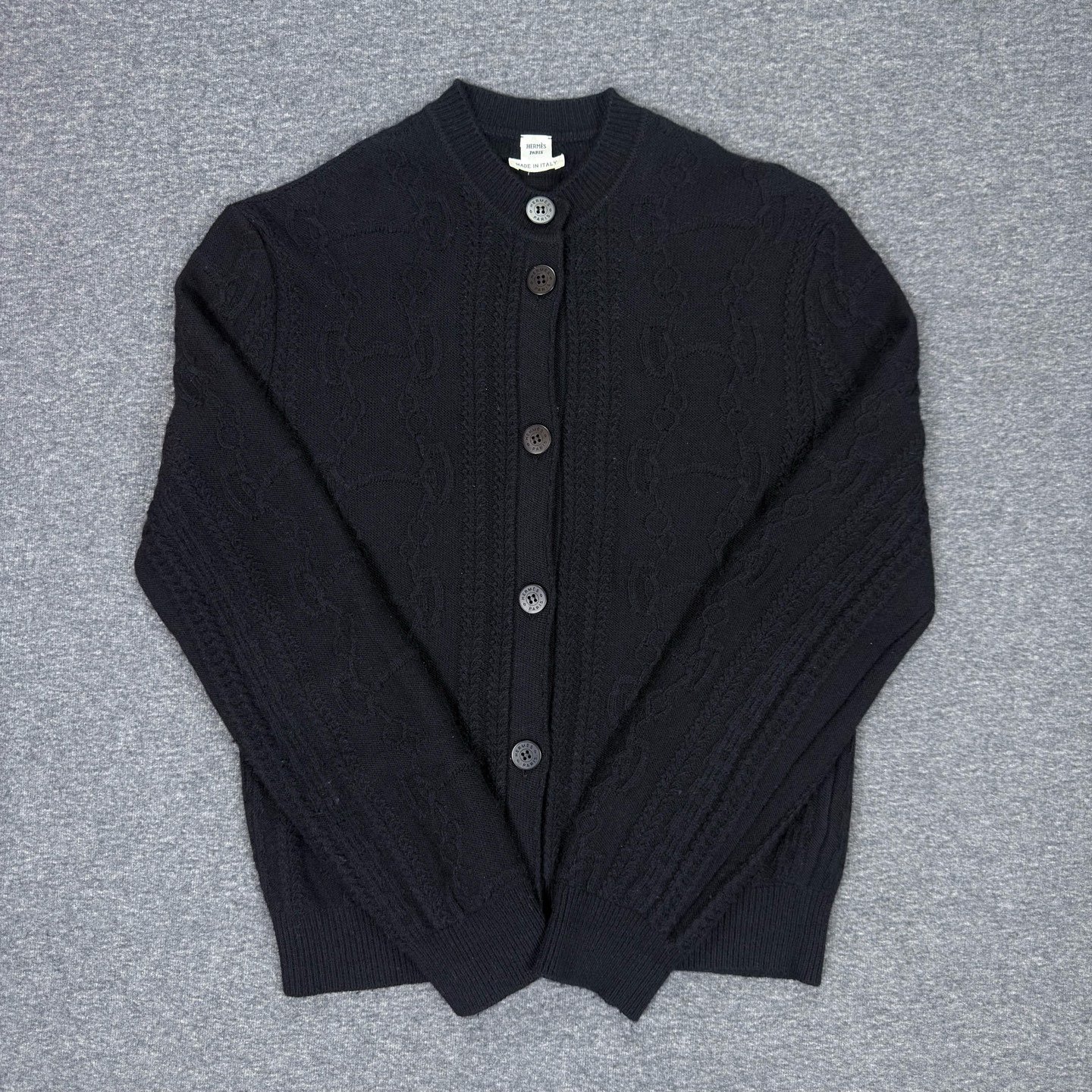 Hermes純黑暗紋羊絨羊毛開衫 34碼 (平放CM )尺寸/ Size: shoulder 46/ chest 48cm / length :60 新舊程度(因人而異 )/Nᴇᴡ :93% 下 單 請 瀏 覽 [買家須知]及 閱 讀ʙᴇᴋᴀ ʟᴜx 條 款 以 保 障 雙 方 利 益 For the avoidance of doubt, these Terms of Buyer shall continue to apply to the Order.